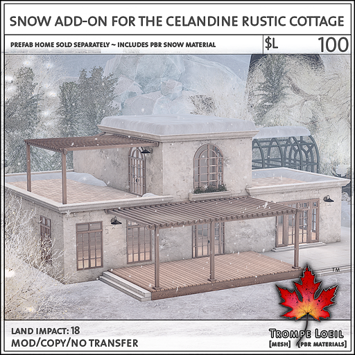 Celandine Rustic Cottage + Greenhouse & Snow Add-On for FaMESHed February